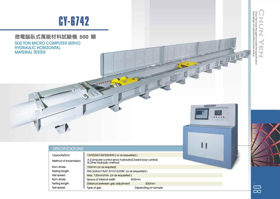 Chun Yen CY-6742 Máy thử kéo 500 tấn thủy lực loại lằm ngang / Uninversal Tensile Testers - 500 Ton Micro Computer Hydraulic Horizontal Material Tester