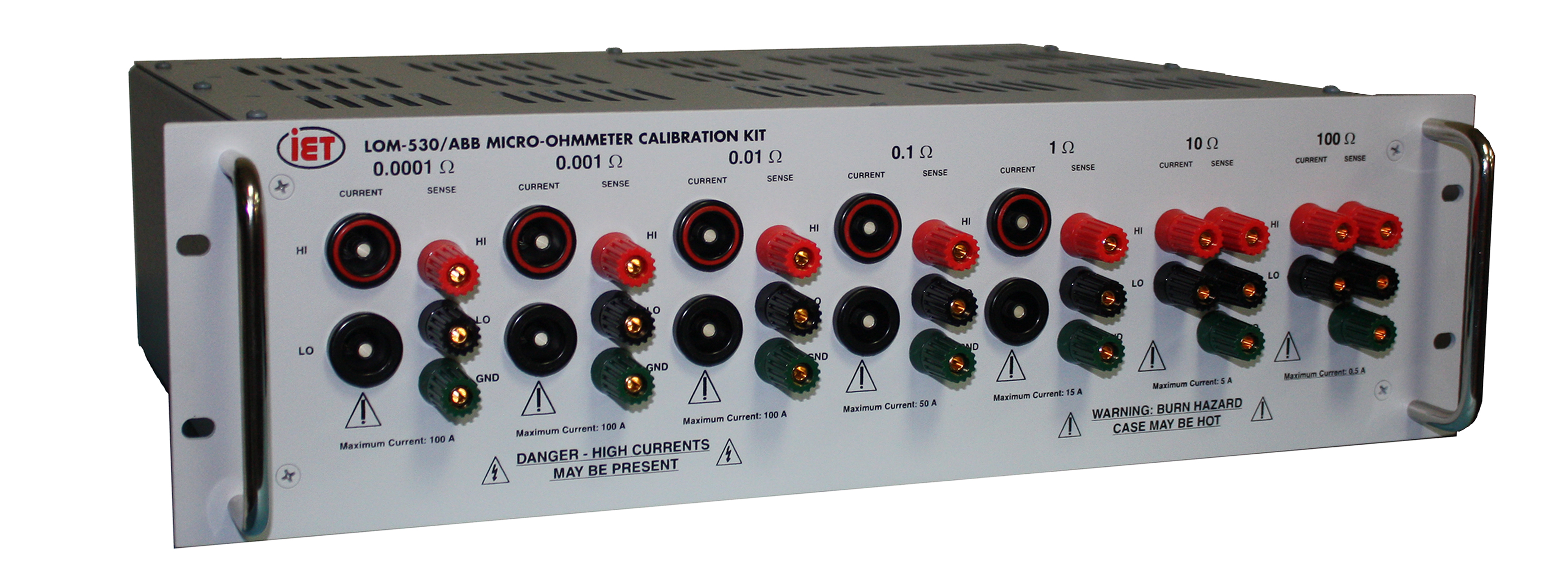 IET Labs LOM-530/ABB IET designed the LOM-530 based upon an existing chassis with custom front panel to accommodate the required high current connectors. Low TC chassis mount resistors and shunts were selected for required performance.