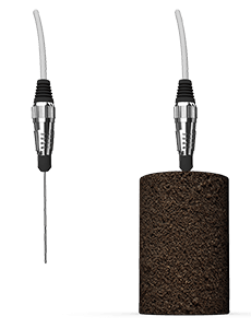 Each TLS-100 comes equipped with the standard 100 mm sensor for testing of soil, soft materials, polymers and easy to drill materials. The needle sensor is fully inserted into an isothermal sample and a measurement is made with the push of a button. After 180 seconds, results are displayed for thermal conductivity and thermal resistivity. Saved results can also be exported to a computer, via Micro-SD card or USB connection.