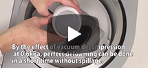 Combining vacuum pressure reduction function with rotation and revolution mixing for general purposes enables efficient elimination of submicron-level air bubbles. With rotation and revolution movement under vacuum pressure reduction, deareation of high-viscosity materials; which was considered difficult, can now be performed with excellent quality. The processing time can be further reduced compared to the atmospheric mixer. In terms of operation; the centrifugal force of revolution during the mixing process suppresses the material within the container, eliminating the need to keep an eye on the material so that it does not overflow, as is needed with static vacuum chambers.