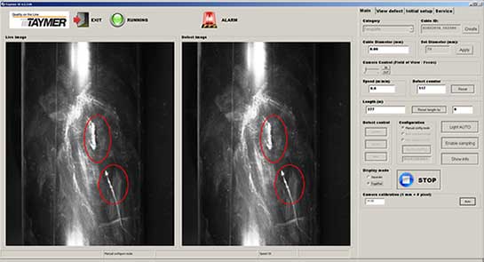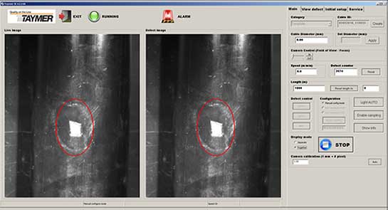 The Surface Inspector provides the operator with up-tothe-second digital image feedback of the current jacket on any production line. This continuous stream of real time information – especially the failure images – allows the operator to isolate causes of jacket imperfections and where the defect is along the cable. This will result in reducing jacket defects before they result in scrapping of product or worse, customer complaints or recalls. Defect images are also saved, so they can be included in quality reports for internal or external use.
