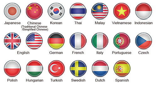 20 Asian and European languages including Japanese, English and German are provided as standard. Display language can be easily changed by operating the buttons.